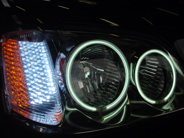 サイドLED部はインナーをカットし 上下をつなげ、LEDの角度を付けました。 ホワイトは正面に、オレンジはサイドに向けてインストールしました☆ 角度を変えるだけで見え方がかわり オリジナリティー溢れるヘッドライトの完成です♪ ハイ&ローのは業界最高品質のハイワットCCFLをインストール(^^) インパクト絶大です!!